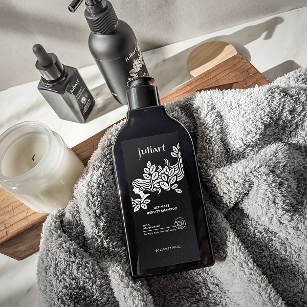 juliArt健髮賦活胺基酸洗髮精選用juliArt明星成分甘草次酸舒緩頭皮不適並溫和調理,更選用茶樹萃取的松油醇滋養頭皮。在清潔時可於起泡15秒後沖洗,第二次清潔則以指腹按摩頭皮1-2分鐘,再以清水沖洗。養髮液加入.5α-酯化鱷梨油、鋸棕櫚除了可平衡油脂,同時強韌髮根。建議於清潔後吹乾頭皮使用,並以指腹輕揉按摩。