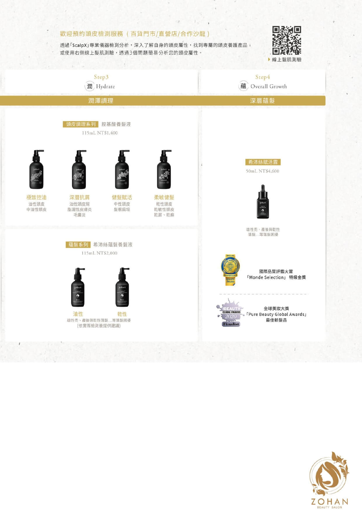 唯一榮獲台灣精品獎之頭皮養護保養流程,可深度調理頭皮環境,創造屬於你的經典。
